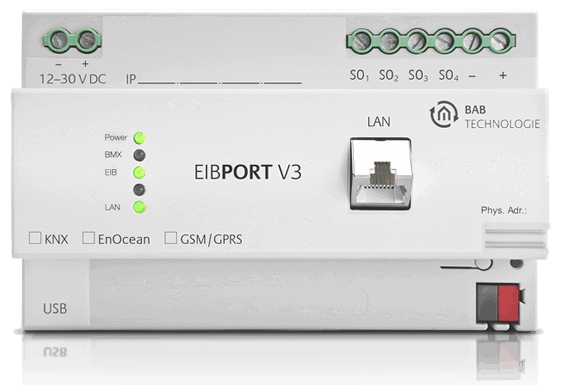 EIBPORT connects building control with KNX gateways or EnOcean gateways to the IP world.